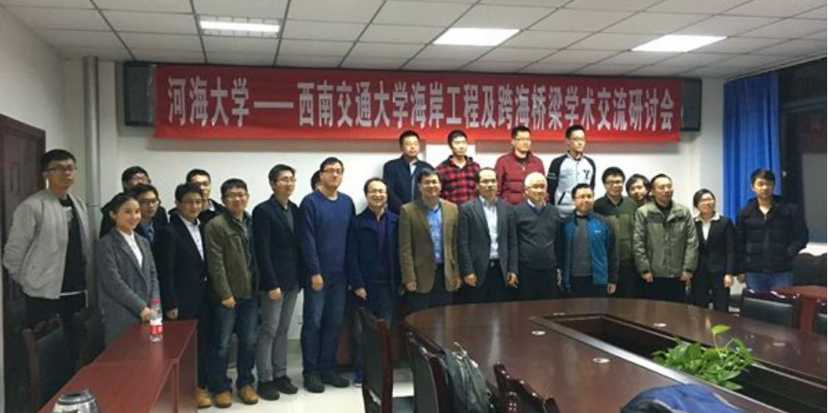 The HHU-SWJU Symposium on Coastal Engineering and Cross-sea Bridge was held in Chengdu from December 8-10th. Dean Bo Gao, Vice Dean Bing Zhu, Professor Dongsheng Zheng from School of Civil Engineering, Southwest Jiaotong University hosted the symposium. Professors Jinhai Zheng, Jisheng Zhang, Associate Professor Huiming Huang, Dr. Ting Huang, Rui He, PhD Candidates Titi Sui and Linlong Tong from Hohai University participated. During the symposium, they visited National Engineering Laboratory for Surface Transportation Geology Impacts Prevention, Key Laboratory of Transportation Tunnel Engineering MOE, Sichuan Provincial Key Laboratory of Wind Engineering and Laboratory of Deep-water Long-span Bridge.