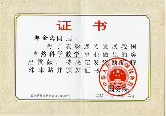 根据人力资源和社会保障部《关于公布2010年度享受政府特殊津贴人员名单的通知》(人社部函[2011]68号)的精神,教育部直属高校和直属单位2010年共有395人获批准享受政府特殊津贴。NT动漫 郑金海教授由于在发展自然科学教学事业中的突出贡献获得批准。