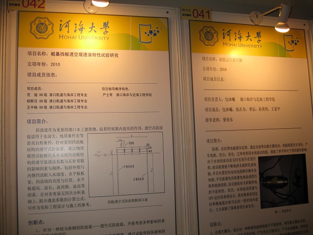 此次NT动漫 共有2项国家大学生创新性实验计划项目参加展示、1项创新性实验计划项目论文参加创新学术年会的交流;在我校项目展台前,由NT动漫 本科港航专业2008级包沐曦主持负责的项目“波能定位救生圈”与本科港航专业2008级范骏主持负责、严士常老师指导的项目“桩基挡板透空堤透浪特性试验研究”作了项目展板展示并同来自全国各高校的同学与老师进行深入交流,引起了专家和多个高校师生代表的浓厚兴趣。本科2008级港航强化班朱峰在创新学术年会上进行了题为“基于SPH方法的碎片穿甲数值模拟”论文研究内容汇报与学术交流,获得了专家组的好评。
