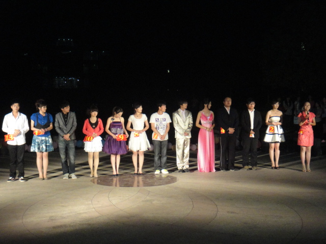 晚6点30分,由河海第一乐队——曾经在南广的摇滚节中获得第一名的bypass乐队进行开场表演,比赛在美妙的音乐声中伴随着小浪底的晚霞拉开帷幕。比赛刚开始,现场的大屏幕上开始播放每位选手的VCR,一段记录着他们的兴趣、爱好,以及他们的亲友团的支持的录像,向现场观众介绍每位参赛选手,而比赛也因为这一段段精心制作的VCR从一开始就进入了高潮。接下了,参赛选手谢弋为大家带来了一段近乎原声的2011年春节联欢晚会主持,媲美董卿的声音,几乎让人以为自己身在晚会现场,引发了全场观众阵阵的欢呼声。过后,参赛选手们都一一为自己的片段配音,其中刘丛选手主持了央视黄健翔的名段“他不是一个人,他不是一个人在战斗!”全场欢呼声如潮。随后,现场进行了激动人心的抽奖活动,而搞笑风趣的问题也引得场上观众笑声连连。第二个环节是考验选手口才与随机应变能力的辩论赛。8位选手分为两组,围绕着“大学扩招是利还是弊”展开了激烈的辩论。犀利的口才再加上标准的普通话发音,激烈的辩论让现场不时得爆发一阵阵热烈的掌声,更有选手亲友团大呼“某某某我爱你”。辩论过后,由第四届主持人大赛冠军黄冶坚同学为现场观众带来了一首改编的吉他歌曲,美妙的吉他声在小浪底飞扬,顺着江宁夜晚的风飘散到远方,动人悠扬。大赛第三个环节是模拟主持,而一号谢弋选手再次用她那专业的声音赢得了现场观众的阵阵掌声。