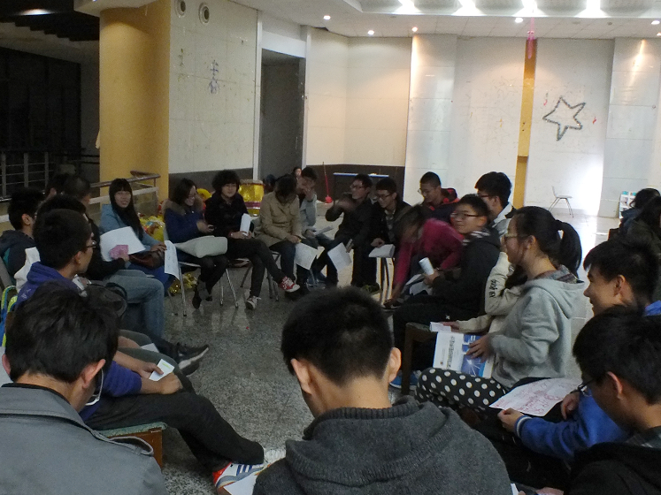 晚上六点半,活动开始。刘老师通过让同学们互相走动、握手打招呼的方式来暖场,为接下来的活动奠定基础。之后,刘老师用事先准备好的18个字签“港航学子携手共进,拥抱未来,享受精彩人生”把大家分成小组进行活动,要求每个小组的成员从“温度”、“湿度”、“软硬度”三个角度描述自己,让大家增进了解。许多并不熟悉的同学在此过程中,开始敞开心扉,畅所欲言。在接下来大家畅谈大学生活与理想的活动中,每个同学都以作画的形式描绘出未来的自己,有几位同学在完成作品后,还幽默地阐述了自己对未来的独特憧憬,在欢乐的气氛中引发了大家对未来的思考。