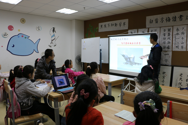 青志大队详细了解了基地相关情况后,精心准备了海洋和飞行器的相关知识ppt,认真给小朋友们讲授,使课堂充满了趣味性。课上,小朋友们认真听讲、积极发言。上午11:30课程结束,热情的小朋友们围着哥哥姐姐们问东问西,成员们和小朋友们一起合影,共同留下了美好的记忆。