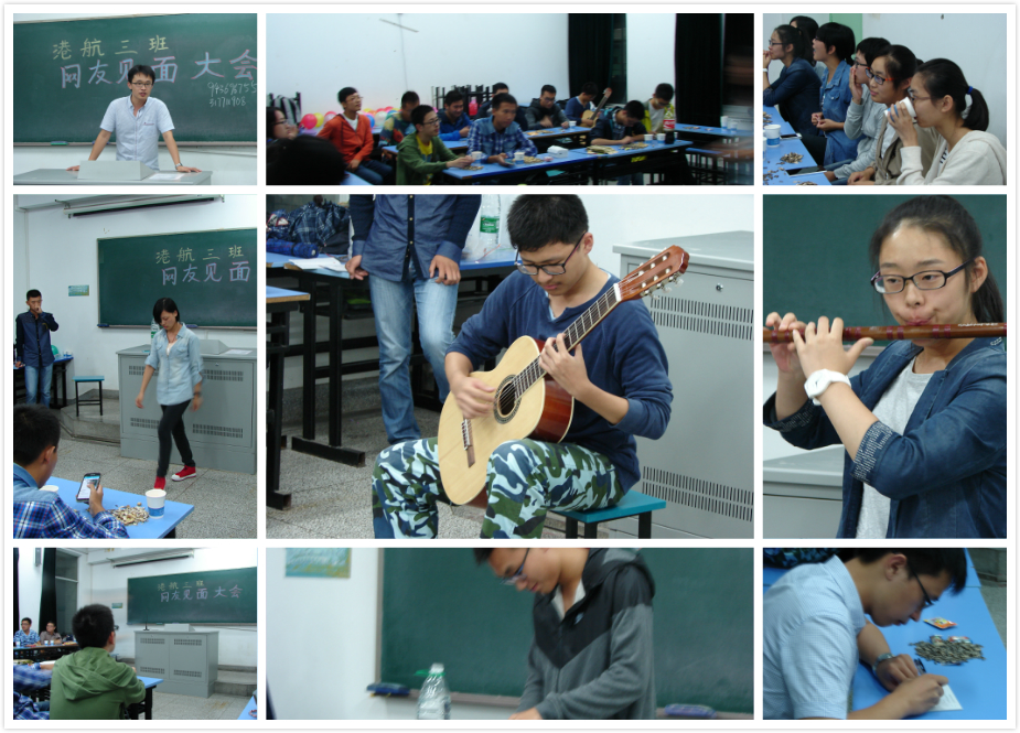 港航2班的特色是超大信息量。同学们入场就坐完毕后,主持人宣布见面会开始并带头作自我介绍,随后同学们也积极地上台,介绍自己和家乡,并在黑板上留下了自己的联系方式。这为同学们以后的相互联系和了解打下了基础。满满一黑板的姓名和电话号码预示了这个班级的信息交流一定是第一位的。