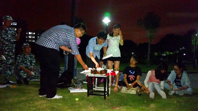 港航4班的见面会充满气氛浪漫气息。活动场地设在环境优美的户外,场地布置有粉红色气球,头顶有朦胧的月色,开场有悠扬的萨克斯曲,活动期间更有梦幻的灯光照射。在散发的清香的草地上,同学们席地而坐,围成一个圆,每个人都能看到别人脸上的笑容。安静的校园内,港航4班同学们的笑声歌声在回响。更为浪漫的是,两位临时负责人精心准备了一个精美的蛋糕,并把第一次班会的这一天定位港航4班的生日。同学们和辅导员共唱生日歌,辅导员和当天生日的一位同学一起在蛋糕上切下了极具意义的一刀。或许同学们因为脸上沾了奶油而狼狈,但浪漫温馨的感觉弥漫在每个人心间。