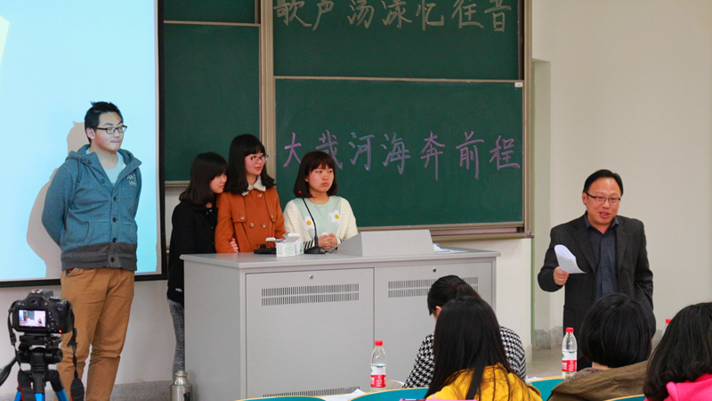 16时,筹划已久的迎庆百年河海的系列活动之“歌声荡漾忆往昔,大哉河海奔前程”校歌解析比赛在勤学楼5112正式开幕。该活动立项伊始,就受到胡忠华书记的亲身指导,值此访问江宁校区契机,胡书记欣然参与到同学们的活动中。胡书记与其他前来观摩的同学一起欣赏了14级港航1班演绎的歌词解析、“严恺先生”故事小品、校史知识问答、抒情朗诵等小片段,并通过自己的切身经历分享了对校歌最后一句“大哉河海奔前程,毋负邦人期”的理解。在活动最后,伴随着对校歌新的理解,胡忠华书记与全体参与活动的师生一同合唱校歌。