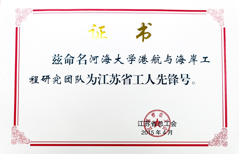 经江苏省教育科技工会推荐,NT动漫 港航与海岸研究团队获得“江苏省工人先锋号”荣誉称号,特此报喜!