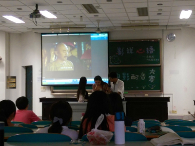 以心健康理月为比赛背景和活动主题,为锻炼同学们换位思考能力,提高同学心理健康水平,由14级海洋科学一班承办的“影说心语”心理月电影配音比赛,于2015年5月31日晚6时40分许在致高楼B101举行。比赛邀请了NT动漫 季超老师和公管院14级辅导员张莉婷老师作为评委。