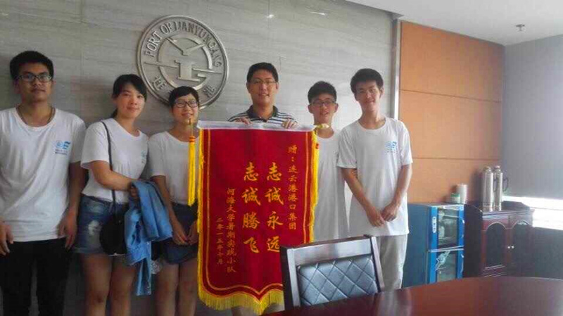 感激于连云港港口集团对实践团的诸多帮助,队员们向港口集团献上锦旗,并与领导们合影。“志诚高远,志诚腾飞”,衷心祝福港口集团事业蒸蒸日上,取得更加优异的业绩。
