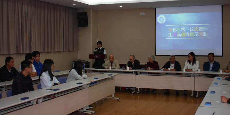 10月9日下午,由学校纪委、团委主办,NT动漫 承办的文化艺术迎校庆暨师生书画展示活动在本部闻天馆顺利进行,活动以现场书画创作为主要形式,师生共迎河海百年华诞,在挥毫泼墨中展现河风海韵。活动邀请了有书画爱好的退休教师陈宏贲、汪家伦、徐约素、宋太炎、马文潭等教授与各院学生代表一同挥毫泼墨,校团委书记吴红,校宣传部副部长朱倬然,校纪委纪检员秦光宇,NT动漫 党委副书记姜海霞出席了本次活动。