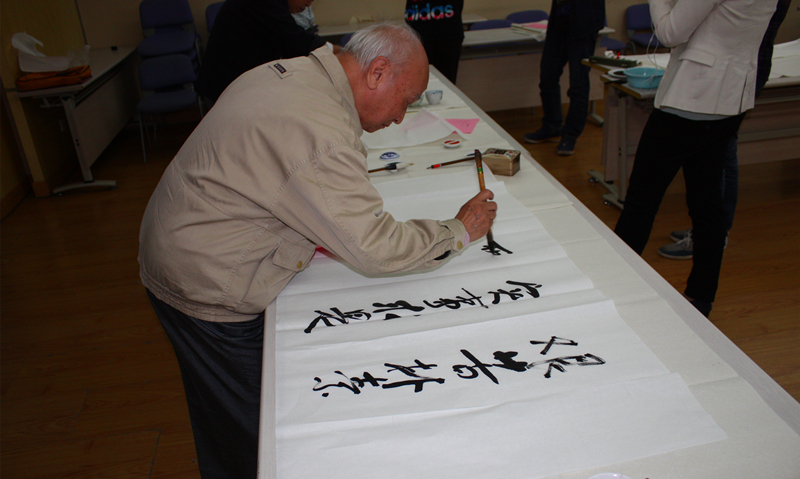 在开始的座谈会中,几位退休教师与大家分享了练习书法的经验,畅谈书法的益处,并向同学们传授学习书法的技巧。他们深入简出地道出书法与做人的道理,带给同学们丰富的人生智慧。同时,退休教师们也与大家分享了记忆中的河海,共同祝愿学校百年华诞。