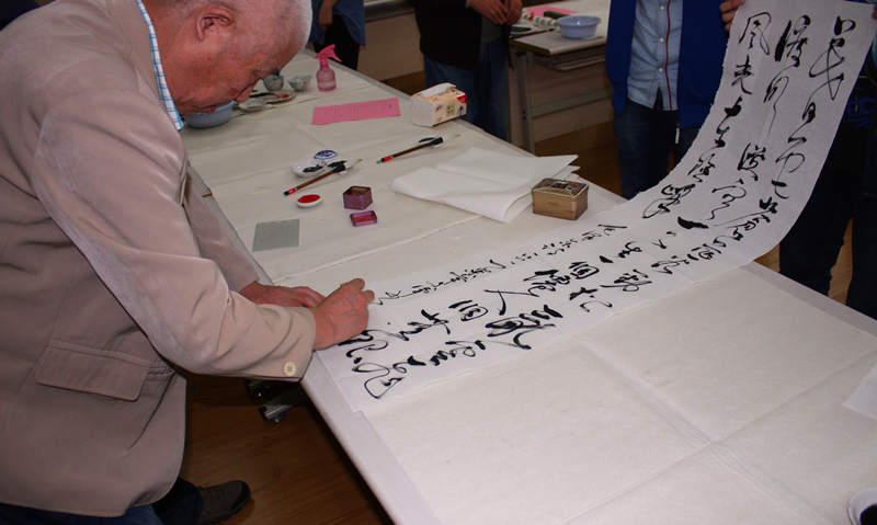 在开始的座谈会中,几位退休教师与大家分享了练习书法的经验,畅谈书法的益处,并向同学们传授学习书法的技巧。他们深入简出地道出书法与做人的道理,带给同学们丰富的人生智慧。同时,退休教师们也与大家分享了记忆中的河海,共同祝愿学校百年华诞。
