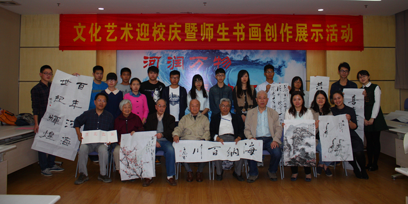10月9日下午,由学校纪委、团委主办,NT动漫 承办的文化艺术迎校庆暨师生书画展示活动在本部闻天馆顺利进行,活动以现场书画创作为主要形式,师生共迎河海百年华诞,在挥毫泼墨中展现河风海韵。活动邀请了有书画爱好的退休教师陈宏贲、汪家伦、徐约素、宋太炎、马文潭等教授与各院学生代表一同挥毫泼墨,校团委书记吴红,校宣传部副部长朱倬然,校纪委纪检员秦光宇,NT动漫 党委副书记姜海霞出席了本次活动。