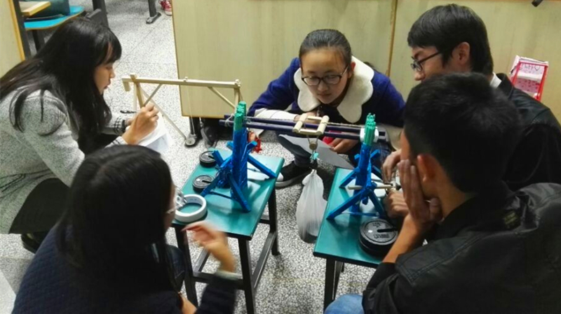 两点半,比赛正式开始,各组选手依次走上讲台,讲述自己的创意思路。从选手们极富感染力的答辩中可以看出,每一位选手都为自己的模型付出了无数的心血,经过巧妙的设计构思和数次的推翻重来,将模型从最初的雏形,渐渐磨砺出最后的佳作。 其中最值得称道的是大禹院王旭组的作品, ppt上列出的物理公式及现场实践的结果令同学们钦佩他们的缜密。NT动漫