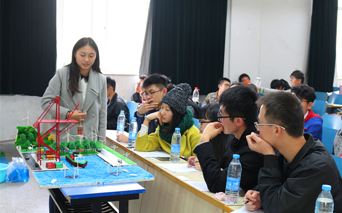 两点半,在主持人阐明比赛评分细则后,比赛正式开始。参赛选手依次上台向评委展示自己的作品,讲解作品的构思、原理、制作过程和心得感悟。评委们认真听取了选手的讲述,仔细观察作品,向选手就作品的细节方面进一步询问。比赛中涌现了相当多思维敏锐的设计者和精美绝伦的作品。林欣然组的港口模型精致而美观,充分展现了港航学生扎实的专业功底和女生的心灵手巧;土木院赵鑫元组的大坝模型充满着创意和梦想,现场的功能展示更让评委们相信这梦想的可行性;张宸豪组的模型发动机彰显着该组的深厚的机械知识积累;最后一组的水力发电试验的成功更是赢得了全场人员的掌声。无数的思维火花在这里碰撞,说不尽的青春创意在这里点亮,精彩激烈的角逐之后,比赛顺利落下帷幕。