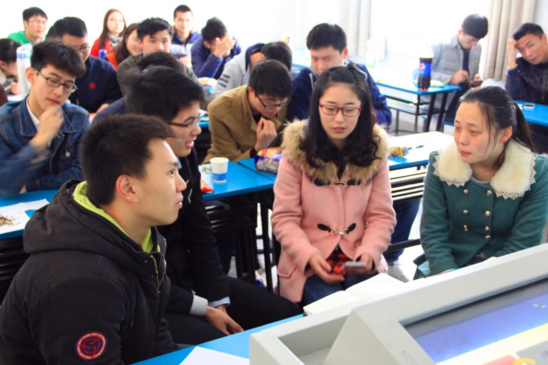 在“反思当下”环节,朱超同学列举出当前大学生遇到最多的几个问题,包括了缺乏责任心和自控力、班级融入度差、宿舍气氛不好、对未来迷茫等问题,经过抽签,同学们被分为若干个4人小组商讨以上问题的解决方案。通过同学们的自我教育和管理,大家提出了应及时建立舍友监督制度,制定出勤奖惩措施等解决方法。