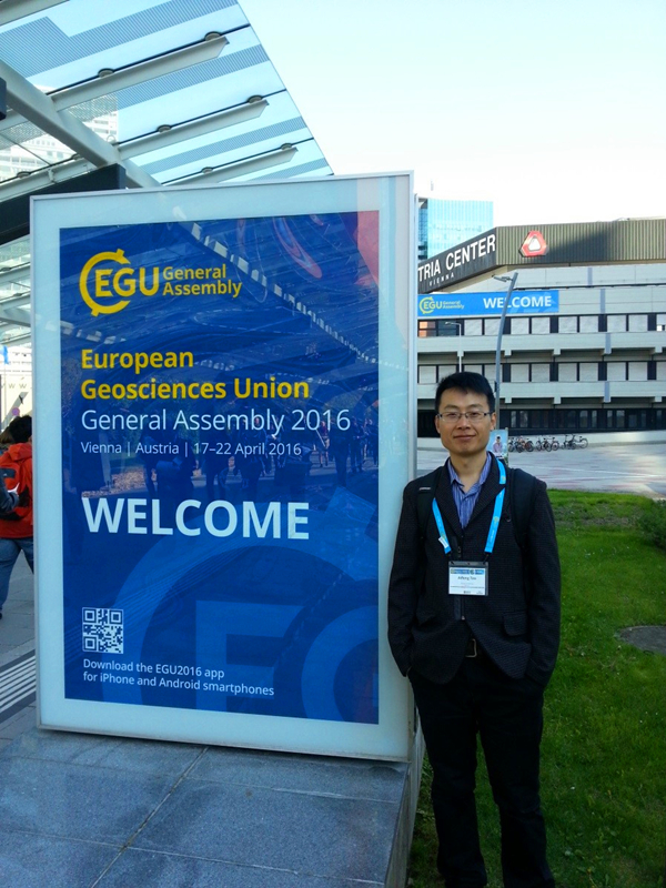 2016年4月19日至23日期间,NT动漫 陶爱峰副教授参加了在奥地利维也纳举办的EGU(European Geosciences Union)2016年国际学术年会。会议期间,陶爱峰副教授在NH5.2自然灾害分会场的极端海洋与非线性波浪方向专题组做了题为“Preliminary investigation on the relation between maximum wave height and wave spectra”的学术报告,并作为优秀学生海报和演讲奖(Outstanding Student Poster and PICO (OSPP) Award)的评选专家参与了该奖的评选活动。