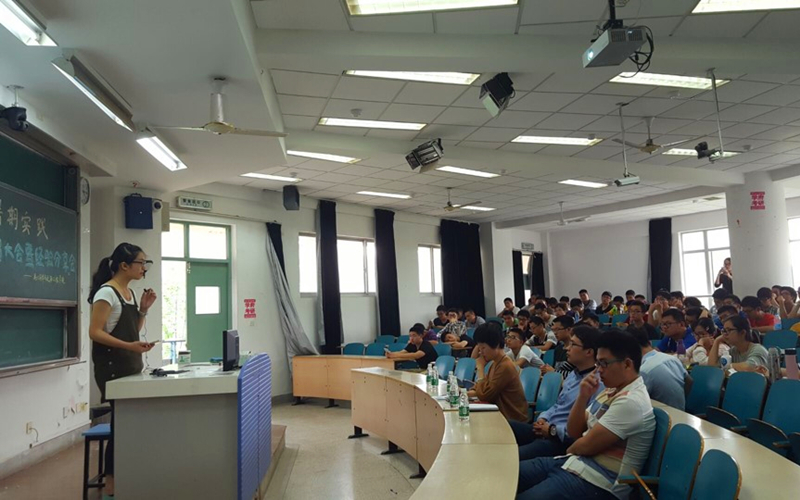 的耿伟伟同学结合学院专业特色向同学们介绍了海洋环保课题的产生及意义。台下的同学们认真地聆听并积极地提问,一一得到解答。活动最后安杰晶老师向同学们强调了社会实践中需要注意的问题,如何选题以及团队合作的注意事项。同学们都在认真地做着记录,争取做出完美的成果。