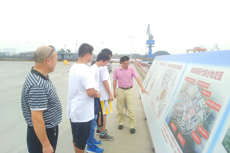 7月13日,实践团来到如皋港集件散杂货港口作业区与保税物流中心等于一体的现代综合物流园。大家浏览了介绍物流园的展板后,在刘局长的带领下,来到即将规划建设的河道旁,了解港口设施的基本要求。