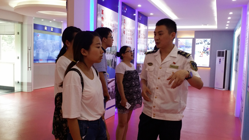 步出会议厅,刘书记热情地向实践团队介绍起2015年南京海事局创建成功的“青年文明号”企业文明称号,并带领实践团队参观船舶交通管理中心、南京水上搜救中心,亲历感受海事部门的日常工作,为实践团队留下直观深刻的印象。