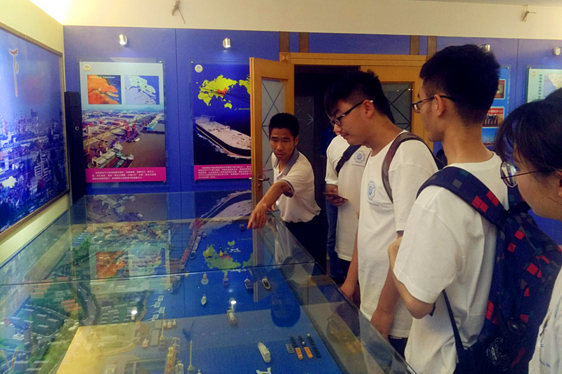 7月8日,调研团抵达我国14个对外开放沿海港口城市之一的南通市。稍作休息,队员们来到南通港口集团有限公司,并在王主任的带领下参观了南通港务集团的历史陈列室。队员们认真听取了王主任绘声绘色的介绍,看着陈列室里的图片、文字资料及南通港区的模型,对南通港口集团有限公司和南通港的历史发展历程有了大致了解。大家饶有兴致地看着墙上的介绍,遥想以后投入专业工作后能为港口的发展做些什么。