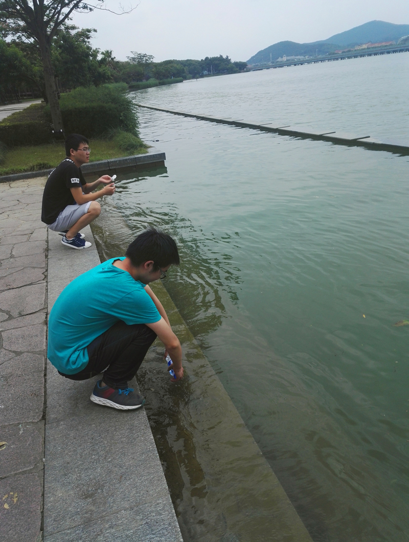 7月9日,实践团前往无锡市蠡湖中央公园,沿太湖水岸边一路前行,观察太湖水质情况。原先计划调研太湖水利工程对防洪防涝的作用,但由于恰逢南方雨势猛烈,太湖水位超警戒水位达到近历史最高,沿湖步行道已被淹没,实践团不得不调整方案。下午,实践团来到梅园,沿梁溪河一路前进至梅梁湖水文站,实践团在此处向当地老人请教了梁溪河对当地民众生活的作用,和他们对此处水利设施用处的看法。
