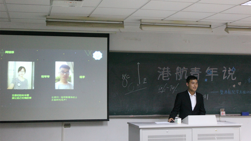 而“学”字自然要归学霸兼科协负责人王聪同学来讲,他声音格外洪亮,毫不吝啬得给新生传授起学习经验。在宣讲会之前,科协宣传视频片段便在社交平台上病毒似得传播,吊足胃口,正片播出更引得掌声欢笑声不断。其后,传媒中心负责人陈家祺同学登场,平易近人的他发言起来也是妙语连珠,把现场气氛又一次推向高潮。