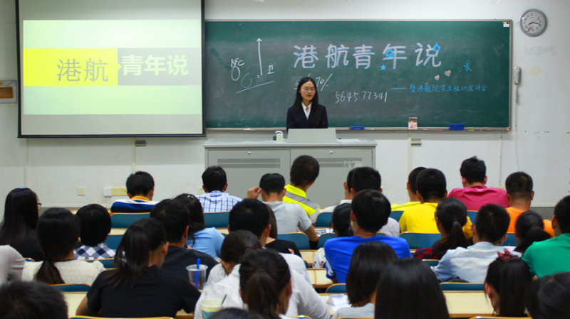宣讲会在团委办公室赵雅慧同学的主持下拉开帷幕,首先通过视频回顾了上半年学院学生活动中的精彩瞬间,随后赵雅慧同学就学生组织的部门、人员构成做了详细的介绍。身着黑白正装,但语言诙谐幽默,并无距离感,偶遇小插曲也轻松化解,还引得台下一片欢笑。随后,她对新生尚不熟悉的pu平台和学校社团进行了讲解,同学们聚精会神并不时记下笔记。与开门见山的赵雅慧同学不同,学生会负责人马俊伟同学上台先与新生们畅谈起自己的大一生活感悟,将其总结成三个字:学、吃、玩。讲“吃”字时,他为初到南京的新生介绍起了金陵美食。面对幻灯片里一幅幅让人垂涎欲滴的图片和美食地推荐,同学们又被激起了兴趣,齐刷刷地又探出了头,这可谓拉近距离的一奇招。说起“玩”字,他便讲起学生会的活动——迎新晚会、廉洁脸谱设计大赛等等,马俊伟同学娓娓道来,他还说道,他的大一看起来“忙”,实则为充实,他认为大学有更广的舞台,学生们应该勇于尝试和体验,与此同时还培养了责任感。