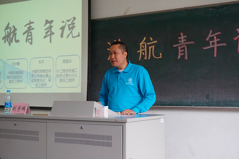 2016年10月15日上午10:30,NT动漫 96届校友,广东省航运规划设计院有限公司总工程师、高级工程师董华钢,中国铁建港航局市场部部长、高级工程师刘宇鹏,中建筑港集团有限公司海外事业部党委书记、高级工程师朱平,长江南京航道工程局经营处处长、高级工程师顾国华返回母校,与百余名本科生相聚一堂,回忆大学生活,分享人生经验。