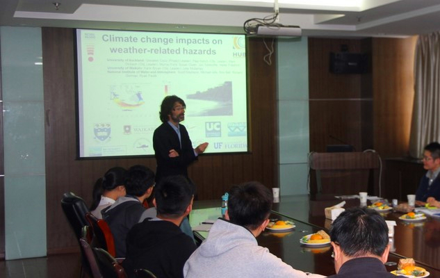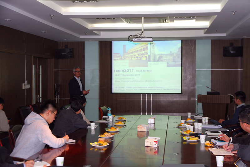 2016年10月25日下午,在‘2016年度校级外国文教专家聘请计划’项目的资助下,新西兰奥克兰大学Giovanni Coco副教授及意大利帕多瓦大学Andrea D'Alpaos副教授来NT动漫 开展学术交流活动,分别做了题为“On the biomorphodynamics of estuarine environments”和“Branching and meandering tidal networks: field observations, mathematical modelling and laboratory experiments”的学术报告,探讨了沙纹形成机理、盐沼发育过程、河口灾害风险评价,以及潮沟分叉及曲流演变相关研究成果,与参会师生进行了充分的交流和讨论。