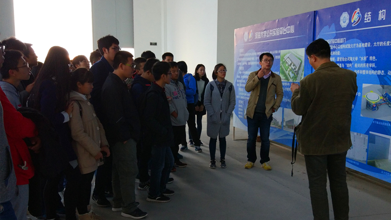 连绵阴雨今得一晴,欣然乘车参观实验。11月2日,2016级NT动漫 的新同学们,在实验中心蔡辉教授、辅导员季超老师的带领下,在NT动漫 江宁校区西区,学习参观了189水利实验大厅。