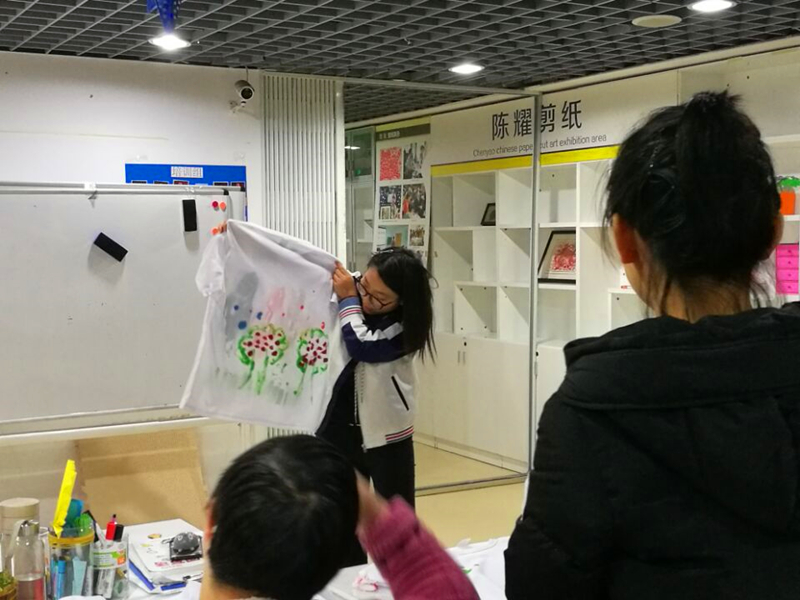 志愿者们到了宁馨阳光家园,一个小队留在宁馨阳光家园与孩子们一起完成文化衫彩绘,一个小队前往附近人流量较多的地带宣传世界水日相关知识。在宁馨阳光家园内,志愿者们与孩子们一一配对,与孩子们交流水文化、水资源保护等小知识,并引导孩子们用水彩、画笔等在文化衫上创作出自己对水的理解和感悟。社区街道上,志愿者们向市民介绍世界水日,讲解生活中的惜水、护水小妙招,并邀请市民在世界水日的宣传横幅上签名。