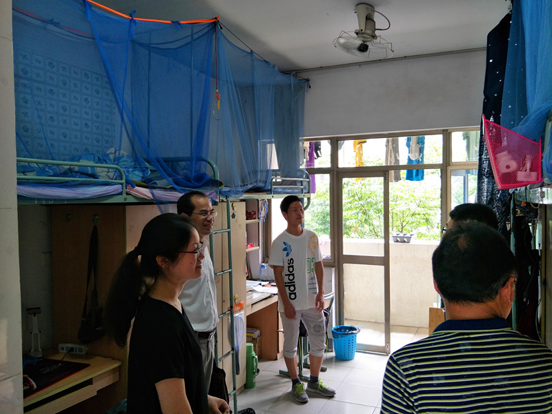 2017年5月31日,学院郑金海院长、党委胡忠华书记、姜海霞副书记在辅导员朱钰老师陪同下前往江南骏园走访NT动漫 2015级学生宿舍。
