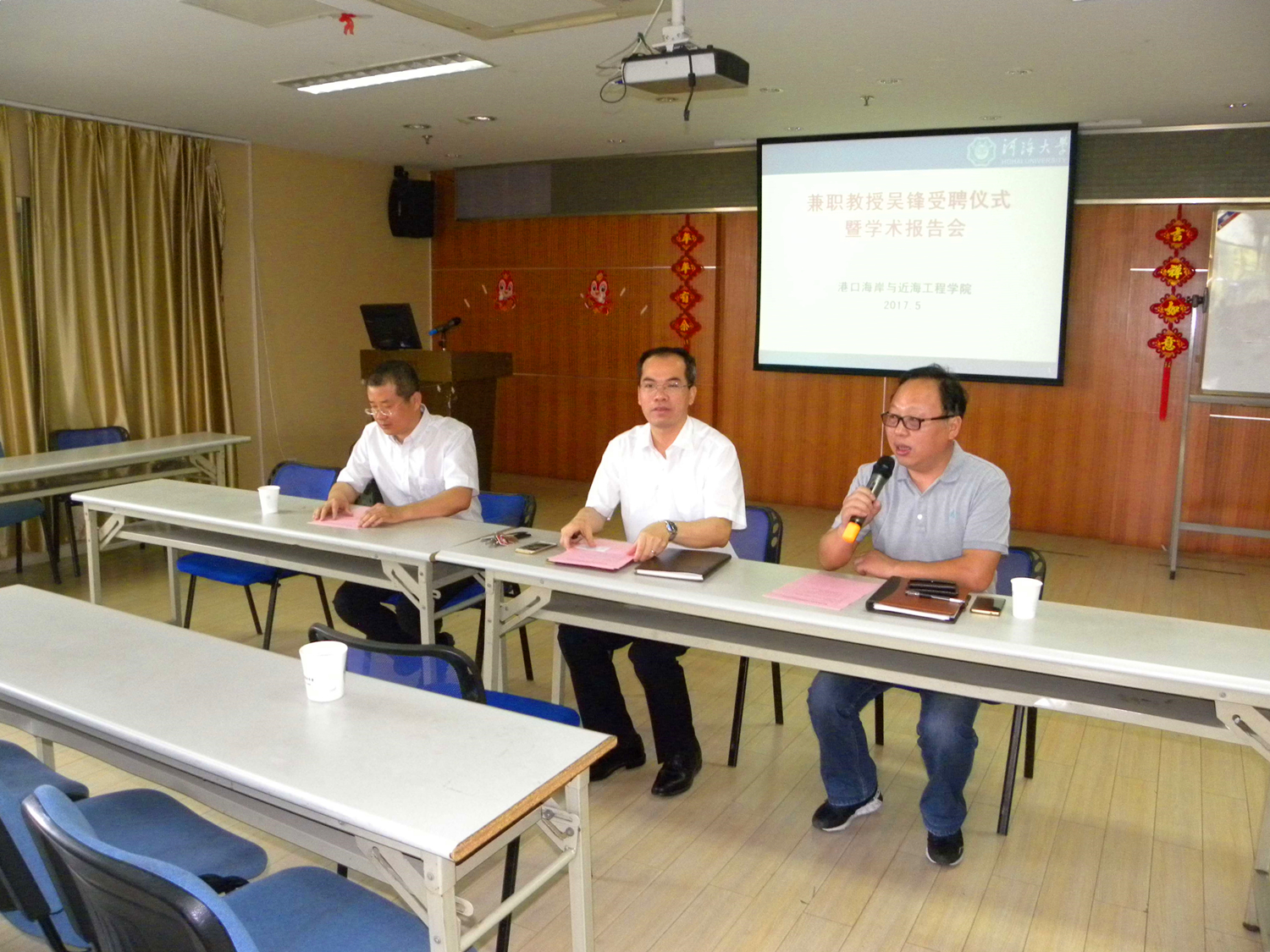 2017年5月26日,中交上海三航科学研究院有限公司副总经理兼总工程师吴锋兼职教授聘任仪式在NT动漫 举行,郑金海院长为吴教授颁发了聘任证书。随后吴锋教授为NT动漫 师生作了题为:“海上风电基础结构检测评估与维护技术”的学术报告,介绍了他所带领的团队在海上风电基础结构检测评估、运营监控以及防腐维护领域的新技术与新思想,并与参会师生进行了深入讨论与交流。