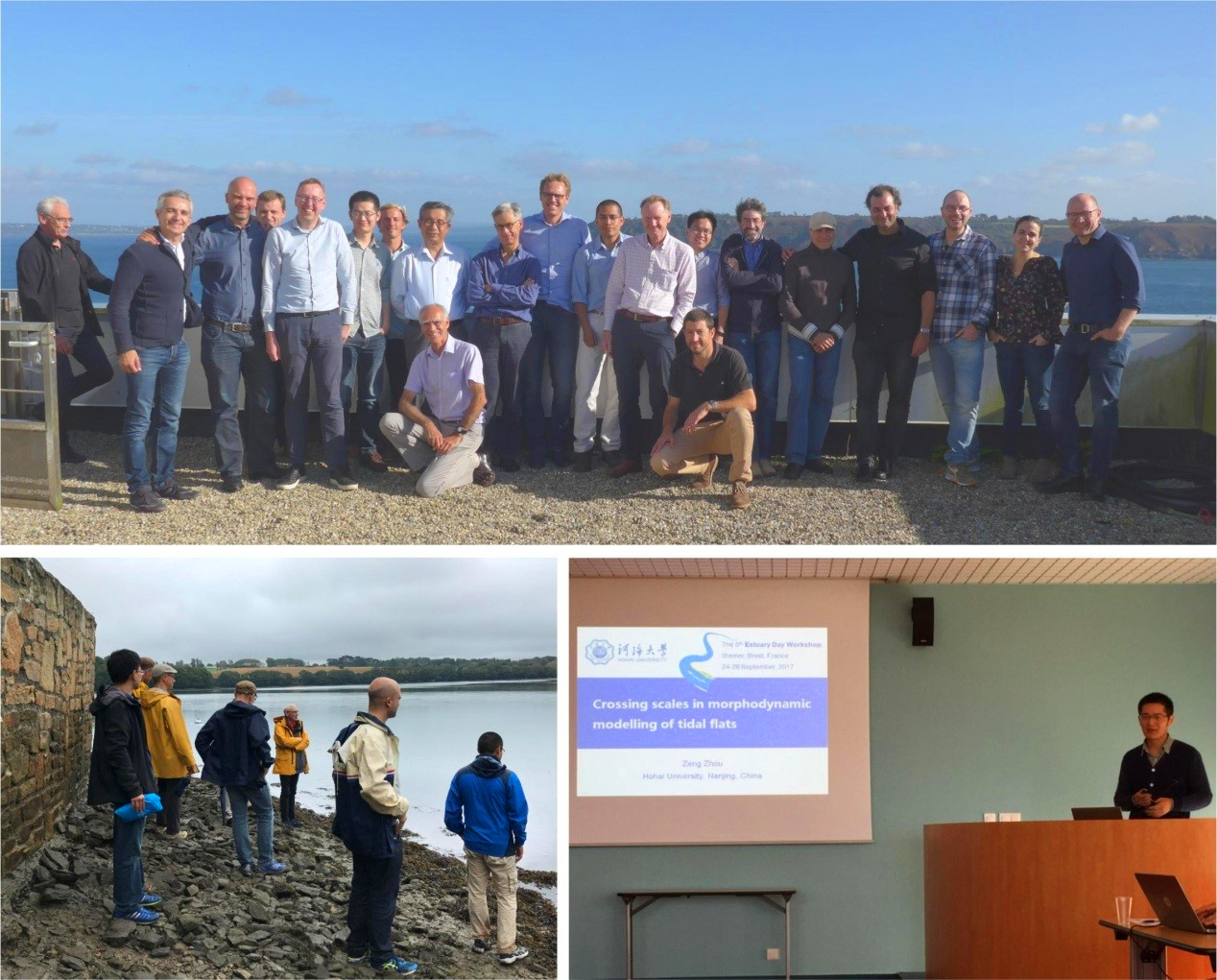 2017年9月24日-26日,NT动漫 陶建峰副教授、周曾副研究员受邀赴法国布雷斯特参加第5届国际河口日学术研讨会(The 5th Estuary Day Workshop,//www.estuarydayworkshop.com/),研讨会由法国海洋开发研究院(Ifremer)举办。会议邀请了多个国家的河口、海岸地貌学研究领域的20多名学者参加,就河口动力地貌学中涉及到的多种物理过程的时间、空间尺度的耦合问题进行了热烈的探讨和交流。周曾副研究员作了“Crossing scales in morphodynamic modelling of tidal flats”的会议报告。会议主办方组织了当地河口的现场考察,在轻松愉悦的气氛中开展学术交流和讨论,为不同学者之间后续合作搭建了理想的平台。
