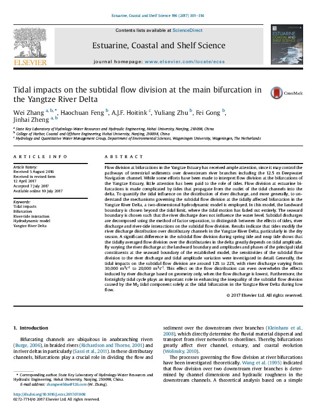 NT动漫 张蔚教授、王韫玮副研究员、季小梅副教授、张俞老师、徐龑文博士后等师生一行8人参加了此次会议。会上,张蔚教授做了题为“Subtidal Flow Division at Tidal River Bifurcations in the Yangtze River Delta”的报告,王韫玮副研究员做了题为“Coupling Bedform Roughness and Sediment Grain-Size Sorting in Modelling of Tidal Inlet Incision”的报告,徐龑文博士后做了题为“Analytical Solution for Salt Intrusion in Estuary with Multi-River-Source”的报告,季小梅副教授做了题为“Numerical Study of Seasonal Circulation and Variability over the Inner Shelf of the Northern South China Sea”的会议展板。其中,张蔚教授在会议上介绍的潮波运动对汊口分流理论的创新研究成果已于近期在河口海岸权威期刊《Estuarine, Coastal and Shelf Science》(196:301-314)上发表。通过此次会议,与会师生就河口海岸相关科学问题中的研究难点、热点与国内外专家、同行进行了探讨,为今后更深层次的交流与合作创造了机会。
