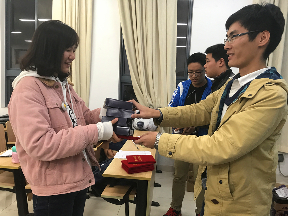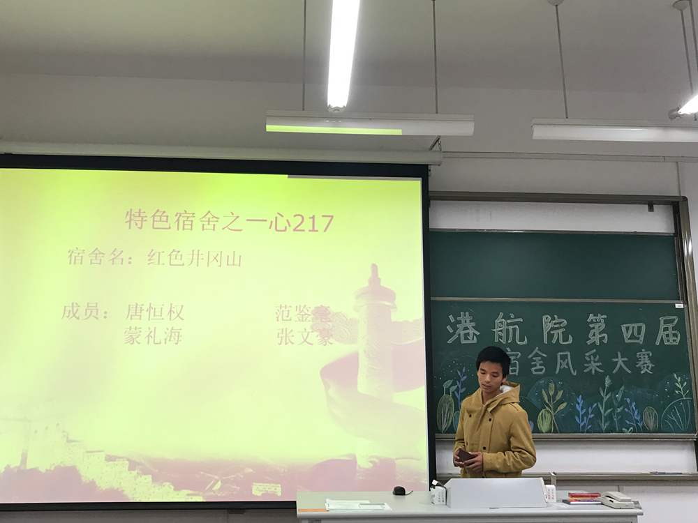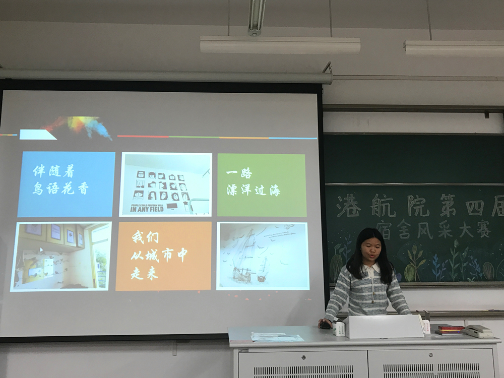 主持人致开场辞后,比赛正式开始。本次比赛共有22个宿舍参加,各宿舍代表依次上台以ppt或短视频的形式介绍本宿舍特色,现场气氛热烈,精彩讲解赢得了大家的阵阵掌声。其中,以《诗经·桃夭》篇为引的“桃之室家”宿舍特色鲜明。精美的折纸作品,清新简单的宿舍布置,干净整洁的宿舍环境,充分体现了同学们的心灵手巧,给观众们留下了深刻的印象。最后,经评委与各宿舍代表投票,选出获奖宿舍。主持人公布现场投票结果,并展示预热活动中的最佳人气宿舍照片。辅导员张同鑫老师上台为获奖宿舍颁奖并合影留念,本次比赛圆满落幕。