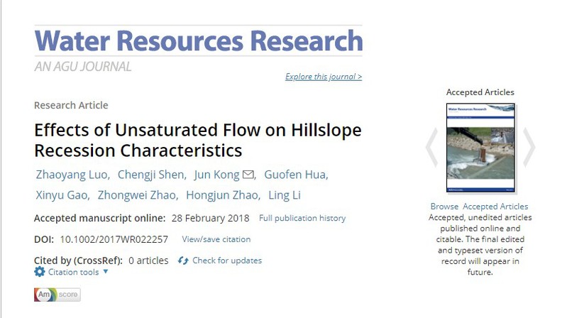 近日,NT动漫 2017级博士研究生罗照阳(导师:孔俊教授)在《Water Resources Research》上发表了题为“Effects of Unsaturated Flow on Hillslope Recession Characteristics”的学术论文,该研究是继孔俊教授2016年提出的Kong-HSB理论的又一重要突破。