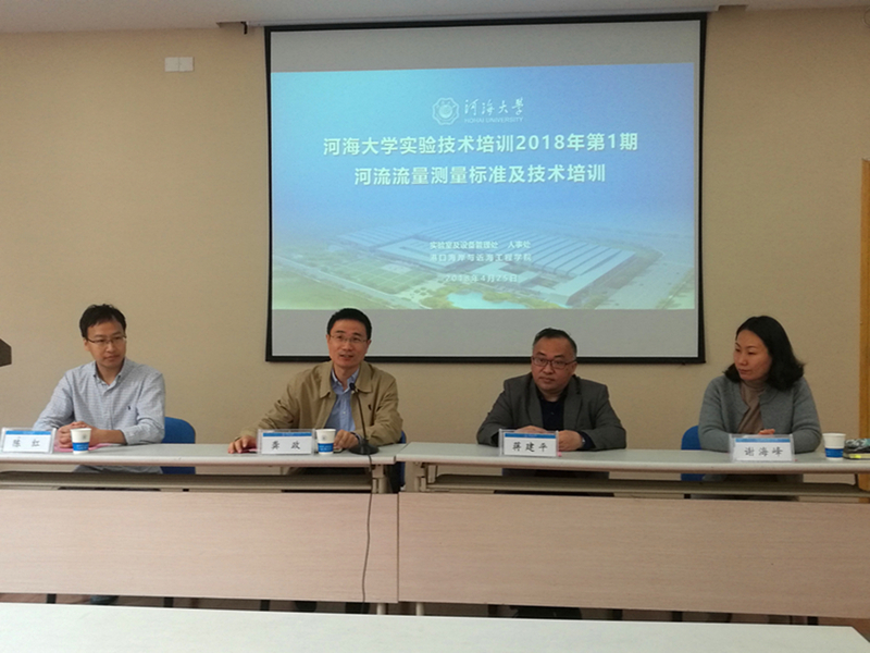 由实验室及设备管理处组织并联合人事处主办,NT动漫 承办的NT动漫 实验技术培训班(2018年第1期)“河流流量测量标准及技术培训”于2018年4月25日上午8时在闻天馆102开班。NT动漫 和来自水文学院、水电学院、环境学院及常州校区的实验技术教师及部分研究生共计40多人参加了本期培训。NT动漫 院长龚政教授、实验室及设备管理处和人事处相关领导出席开班仪式并发言,就搞好实验技术系列培训给予赞同,并对老师和同学们的参加表示欢迎。