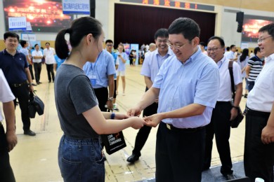 9月1日上午,NT动漫 党委书记唐洪武、校长徐辉、副校长许峰在各职能部门领导的陪同下,来到学院注册点亲切慰问在场工作的班导师和志愿服务学生。在办理报到注册的过程中,徐辉校长与2018级港航4班学生唐琬婷亲切交谈,唐洪武书记更是亲自向唐婉婷同学发放校园一卡通等物品,并殷切寄语。