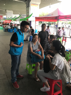 在今年的迎新工作中,NT动漫 承担了南京火车站南广场的迎新志愿服务工作。NT动漫 2017级志愿者们身着统一的蓝色志愿者服装,精神饱满,热情洋溢,在南京站迎新接待点迎接新生及家长的到来,耐心地解答他们的问题,并积极引导,协助他们进行行李的搬运和装卸。他们热情的服务态度、高效的办事效率,赢得了新生和家长的肯定。