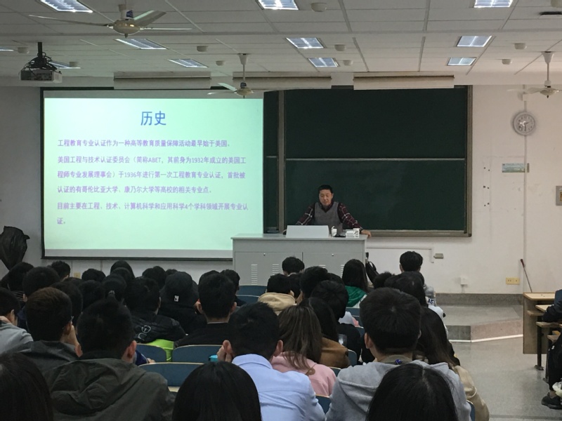 冯卫兵教授从专业认证的角度入手,通过专业认证背景、工程专业认证目标、当代工程科技的特点等方面的介绍,加深同学们对工程专业尤其是水利类专业的认知。他提到,工程专业认证是提高中国高等工程教育质量的抓手,在中国经济进入新常态下港航专业要拓宽视野、走向国际,因此他提出对于工程专业锻炼出来的学生要能够真正做到“懂工程”。在提到专业的学科教育时,冯教授指出,工程专业要与人文、社会科学、美学相交融、凸显现代工程专业的多样性,提高本专业学生的综合性。