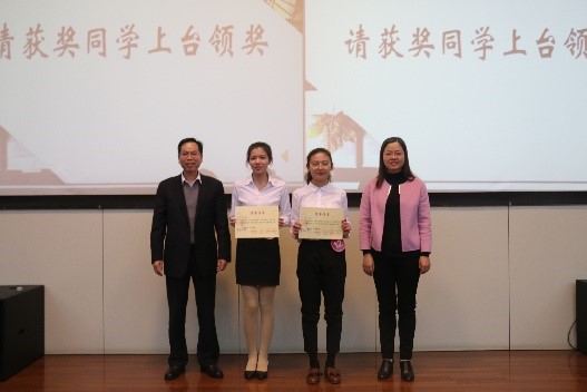 经过现场考核与计分,NT动漫 第三届校史讲解大赛最终评选出一等奖2名,二等奖4名,三等奖8名,档案馆馆长叶鸿蔚、学生处处长吴红、NT动漫 党委副书记姜海霞、档案馆馆长助理王清为获奖同学颁发了荣誉证书。