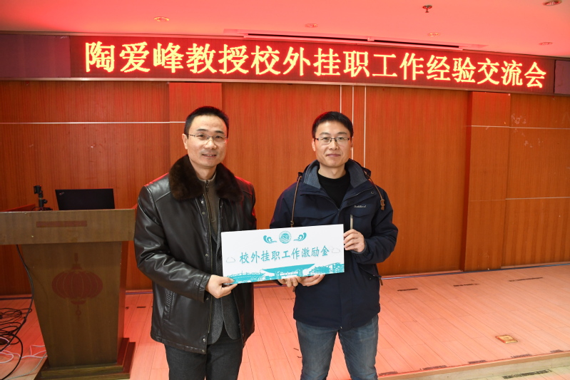 龚政院长为陶爱峰教授颁发了“校外挂职工作激励金”,并做了总结发言。他认为教师通过挂职,能对国家政策的把握更加精准到位,视野见识更加开阔全面,对专业的理解更加深入透彻,对教师本人是一次积累实践经验、提高综合素质的好机会。陶爱峰教授服从大局,很好地履行挂职使命,建立起和国家自然资源部良好的对接关系,搭建了与国家海洋局资源共享的信息平台和长期合作的桥梁与纽带,为推动学校双一流建设做出了重要贡献。