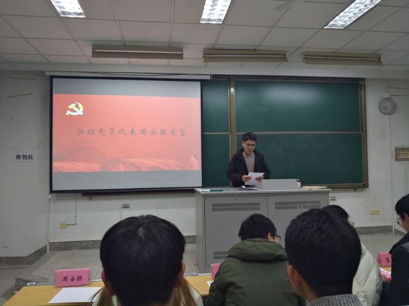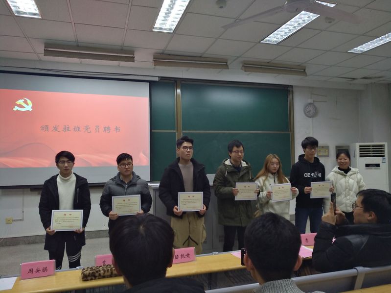 2019年1月14日晚6:30,NT动漫 2018级驻班党员聘任仪式于江宁校区致用117教室成功举行。2018级全体学生参加,辅导员季超、张同鑫、顾钰恒老师以及万文杉、许亚飞、周安骐、陈凯啸、艾欣和王昊等6名驻班党员出席。