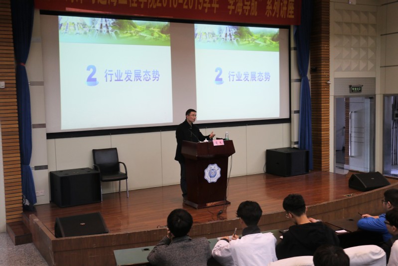 龚院长将此次讲座内容分为四大板块:专业内涵、行业发展态势、专业课程体系和职业规划。就专业内涵方面,他讲述了港口工程、航道工程和海岸工程相关知识,使同学们更加深入了解港航专业所涉及的领域与范围。