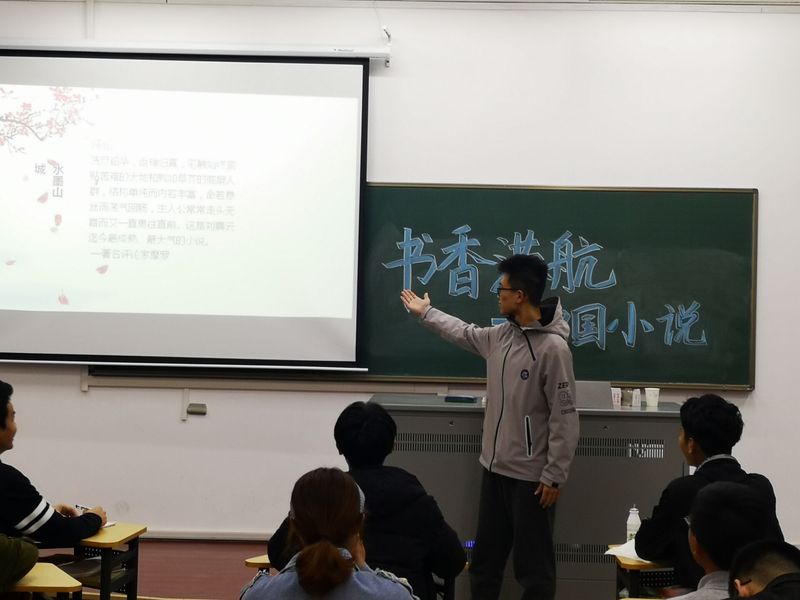 本场主题为中国小说,在主持人孟宪楠介绍了本场交流会的主题之后,彭泽曦同学带来的《一句顶一万句》拉开本场序幕。对于这本书,彭泽曦同学在介绍了书本内容的基础上,还和大家分享了他最喜欢的句子,并谈了谈自己对于这些句子的理解,对于书的认识,并推荐了同名电影。与彭泽曦先看书再看电影的顺序不同,郭蓝天同学则是通过寒假大热电影《流浪地球》产生了对于原著的强烈兴趣从而读了刘慈欣的同名小说。