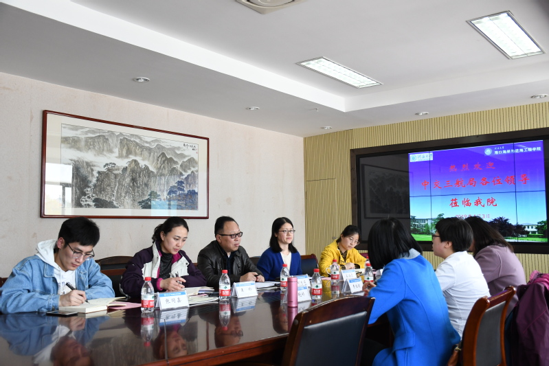 2019年4月3日下午,中交第三航务工程局有限公司人力资源部高级主管费佳颖、第三工程有限公司人力资源部经理梁艳娇、副经理王珍一行3人到NT动漫 开展调研,双方就校企合作、校园招聘、人才培养等方面的工作进行座谈交流。学院胡忠华书记、姜海霞副书记、王玲老师、季超老师、顾钰恒老师、张同鑫老师参加了座谈。