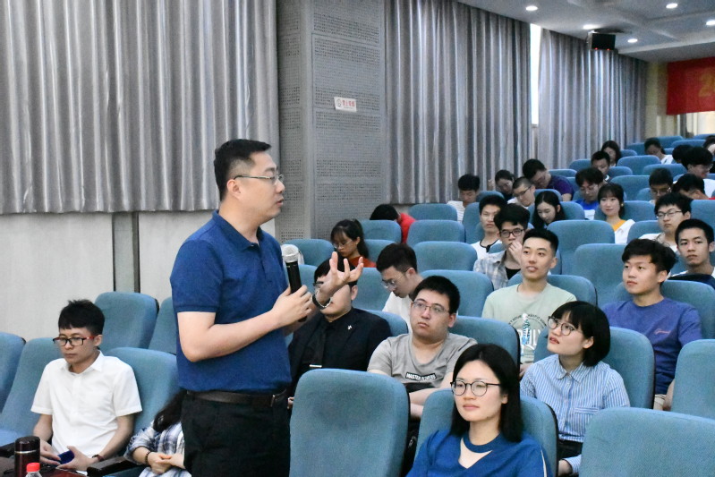河海校友姚荣经理以“某愁前路无风景,职场人生多壮志”为主题,从入职第一年、第三年内、五年后三个部分为大家介绍不同时期的职业发展状况及经历的心理变化,希望同学们在工作中能够具备行业认同感、找准“方向”,打造“核心竞争力”,从一名学生成功转变为精英职场人士。