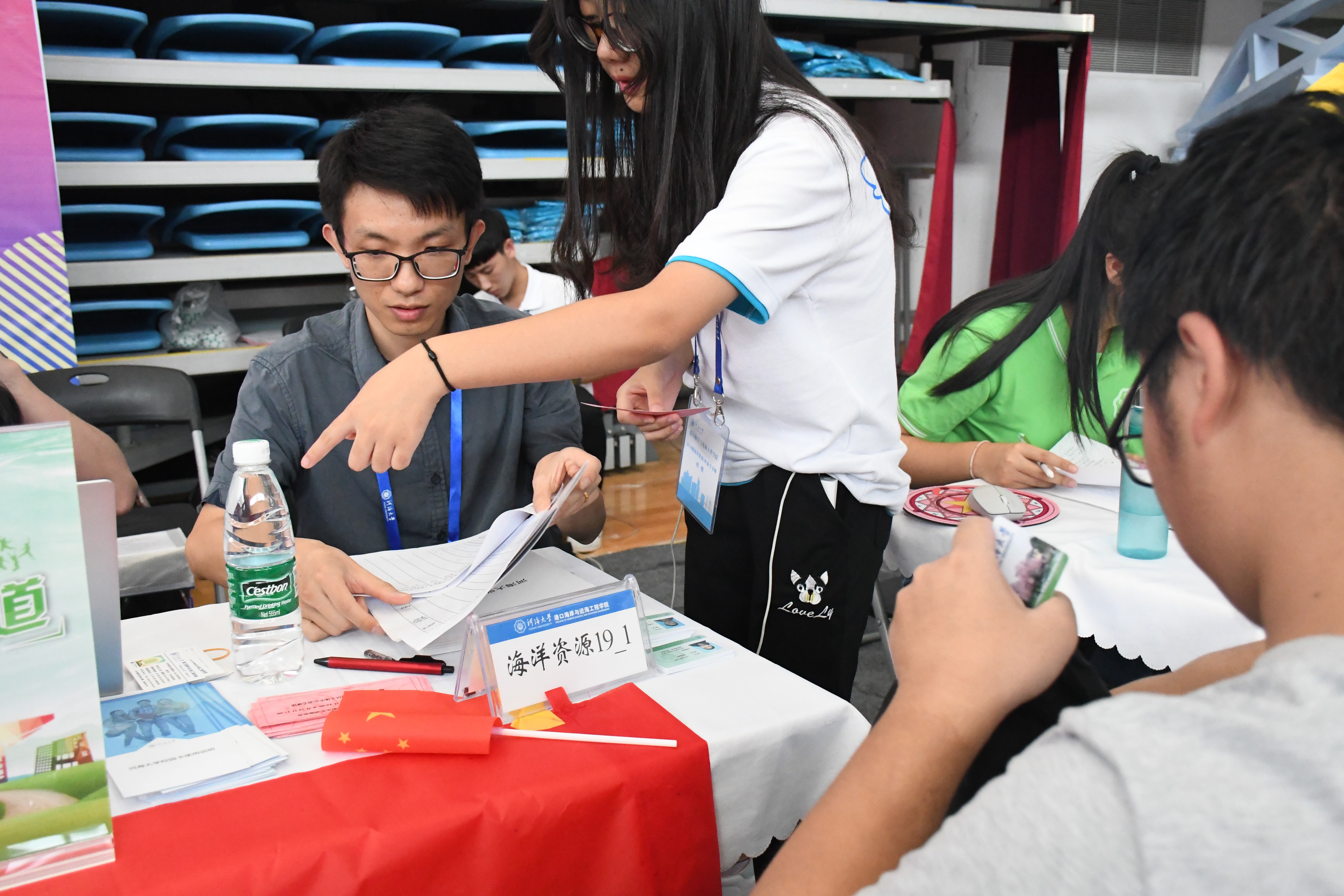 报到开始,在学生助学导师、志愿者的协助下,港航1班班导师蒋柳鹏、港航2班班导师吴德安、港航3班班导师许春阳、港航4班班导师薛米安、港航5班班导师侯利军、海洋资源1班班导师姚鹏细致认真地检查一份份材料、分发一份份物资,同时也不厌其烦地解答新生的种种疑问,为小帆们在NT动漫 “安家落户”解惑答疑。新生们也按耐不住入学的激动和对大学生活的向往,在迎新背景板前留下了挺拔、自信的身影。