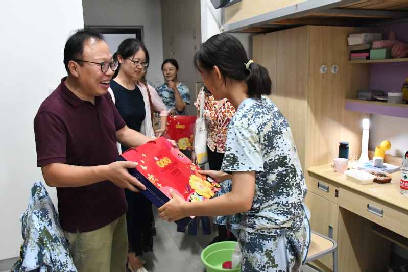 走访宿舍过程中,胡书记和姜书记同新生们展开了亲切交谈,询问了同学们对学校新生活的适应情况,并提出了有计划学习的建议指导,同时殷切关心同学们军训中的身体状况。同学们向两位书记亲切地说明了自己的适应情况和对未来大学生活的期待,并认真听取了书记的建议。最后,NT动漫 领导们一同为每一位新生送上了独特的月饼礼盒,并表达了学院对学生的祝福,鼓励同学们积极适应大学生活。